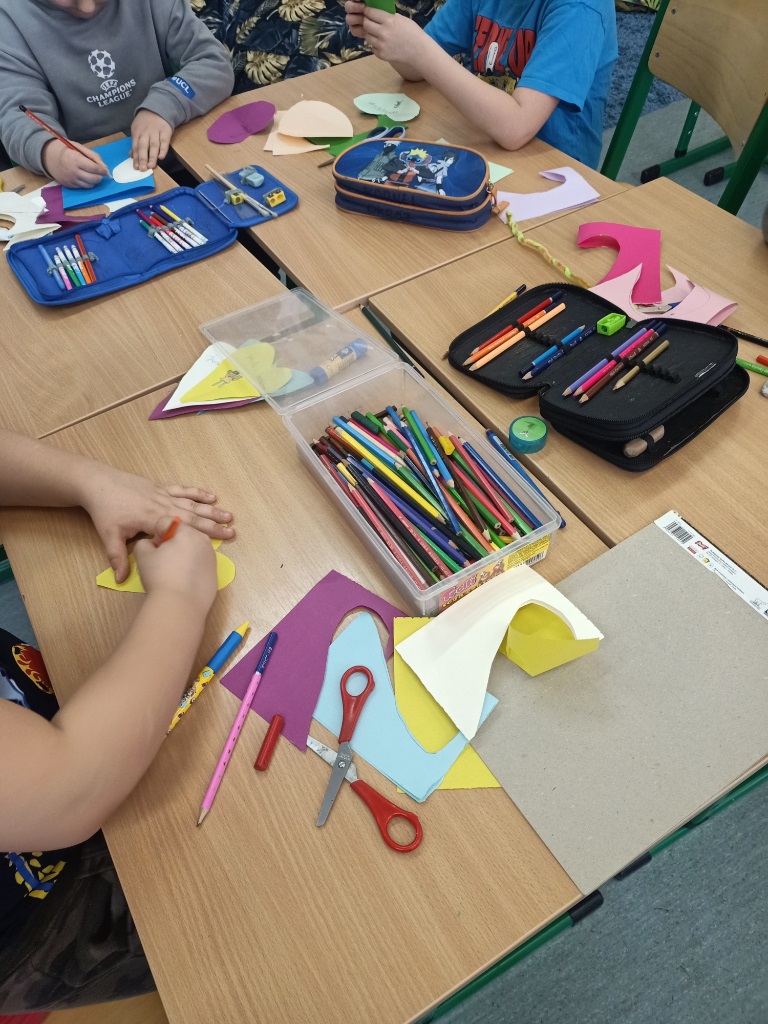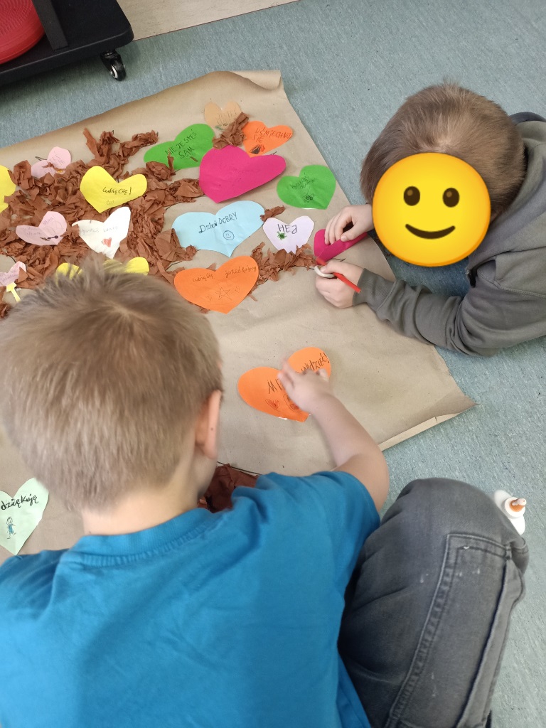 Uczniowie klasy 2b podczas zajęć rozmawiali o tym, czym jest życzliwość i jak możemy ją okazywać na co dzień – w klasie, w domu oraz w relacjach z rówieśnikami. Celem zajęć było kształtowanie postaw empatii, wzajemnego szacunku oraz uwrażliwienie uczniów na potrzeby innych. Dzieci podawały przykłady dobrych uczynków, miłych słów oraz gestów, które sprawiają radość innym. . Najważniejszym elementem zajęć było wykonanie wspólnej pracy plastycznej – „Drzewa Życzliwości”. Tym razem drzewo zostało ozdobione kolorowymi serduszkami, na których dzieci zapisały dobre słowa oraz miłe zwroty pełne wsparcia. Każde serduszko stało się symbolem życzliwości i dowodem na to, że ciepłe słowo ma ogromną moc.