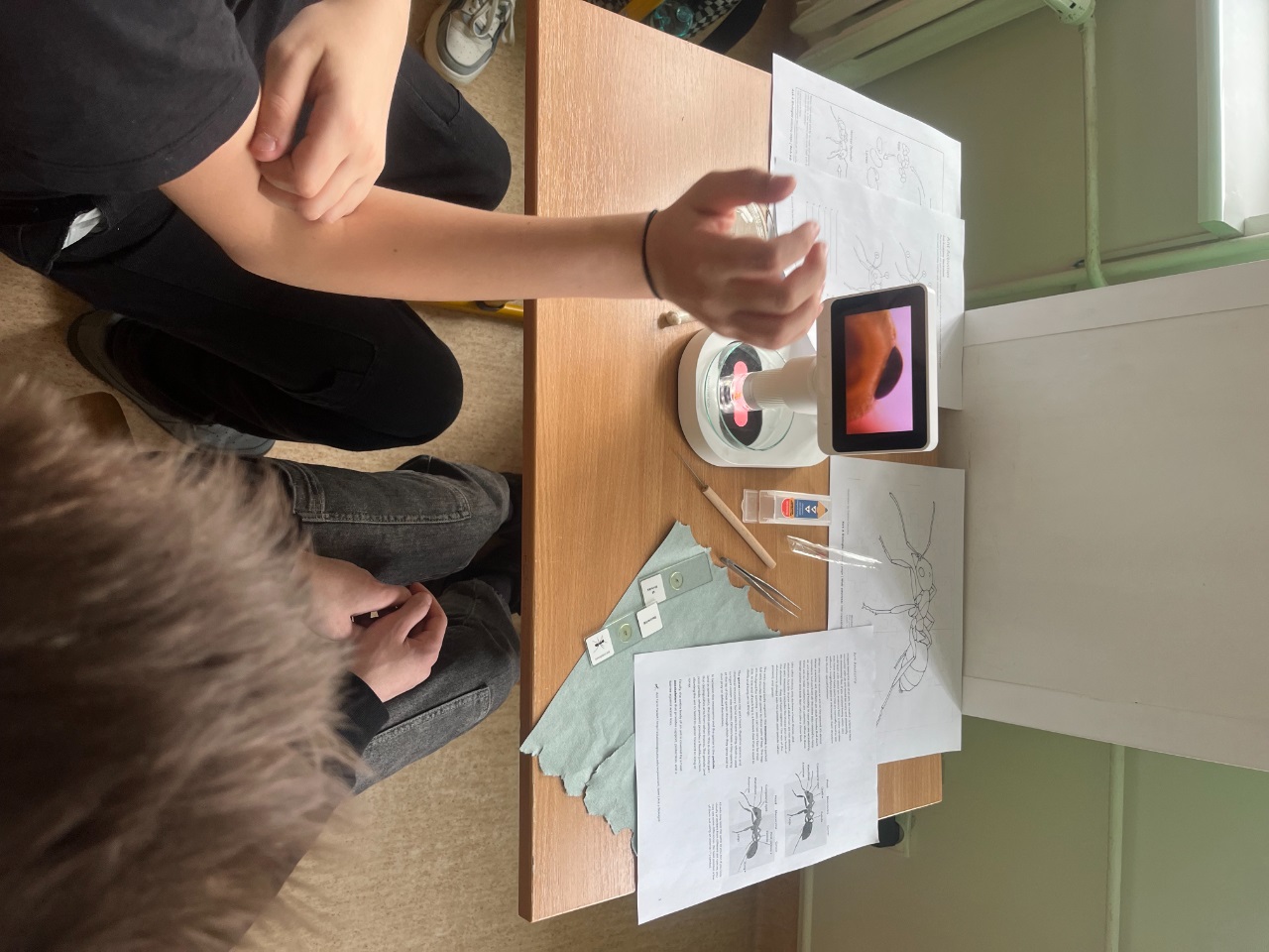 Lekcja była okazją, aby z bliska przyjrzeć się szczegółom anatomicznym budowy mrówek. Największe wrażenie zrobiły na nas oczy złożone, dzięki którym mrówki odbierają ruch i światło w zupełnie inny sposób niż my. Odkryliśmy też przyoczka – małe, dodatkowe oczka na czubku głowy pomagające orientować się w świetle. To było jak biologiczne śledztwo pod lupą!