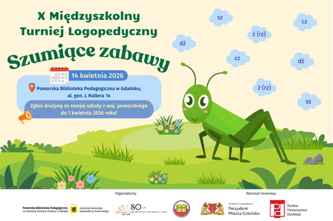 14 kwietnia 2026 r. w Pomorskiej Bibliotece Pedagogicznej w Gdańsku odbędzie się Międzyszkolny Turniej Logopedyczny, organizowany przez Pomorską Bibliotekę Pedagogiczną w Gdańsku oraz Szkołę Podstawową nr 49 w Gdańsku.