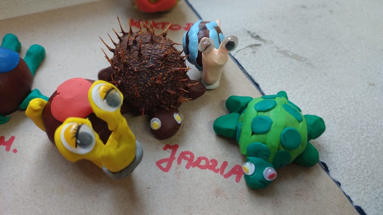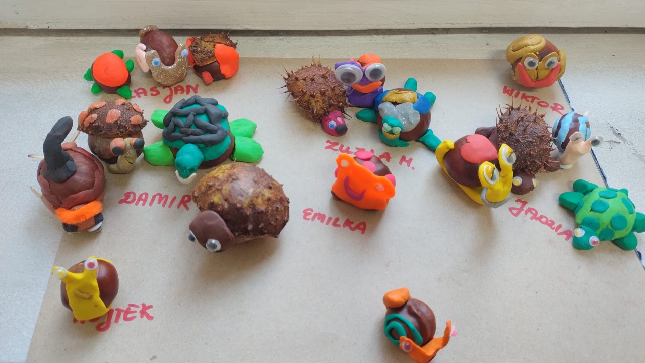 W październiku w świetliy nie zabrakło zajęć plastycznych na których zaakcentowane zostały dary jesieni , barwy jesieni. Pracowaliśmy z wykorzystaniem różnych środków i metod plastycznych. Nie zabrakło prac z liśćmi w roli głównej oraz jesiennych ślimaków z kasztanów.