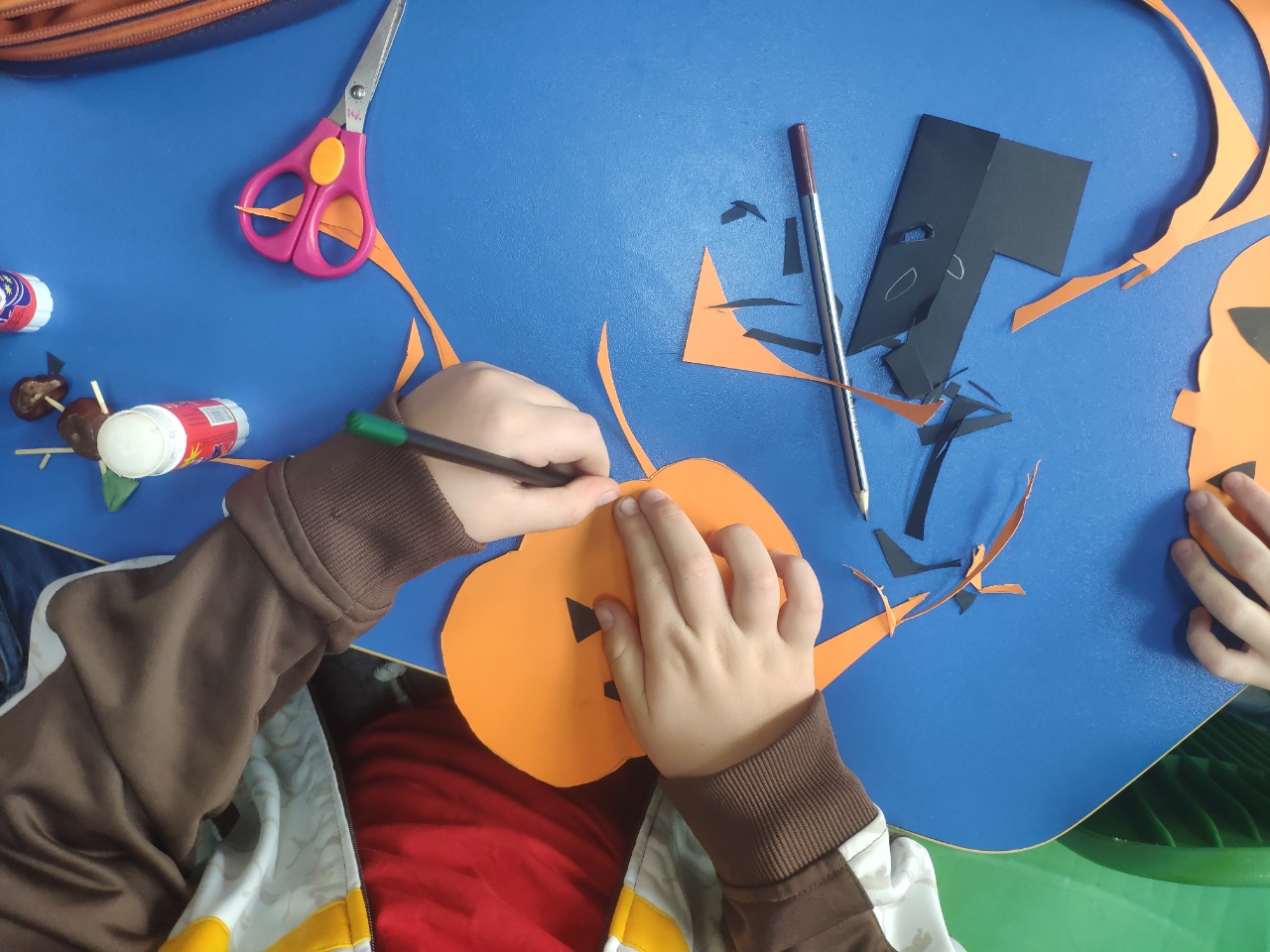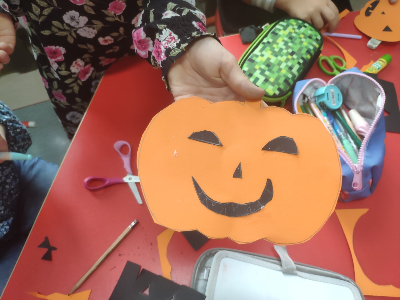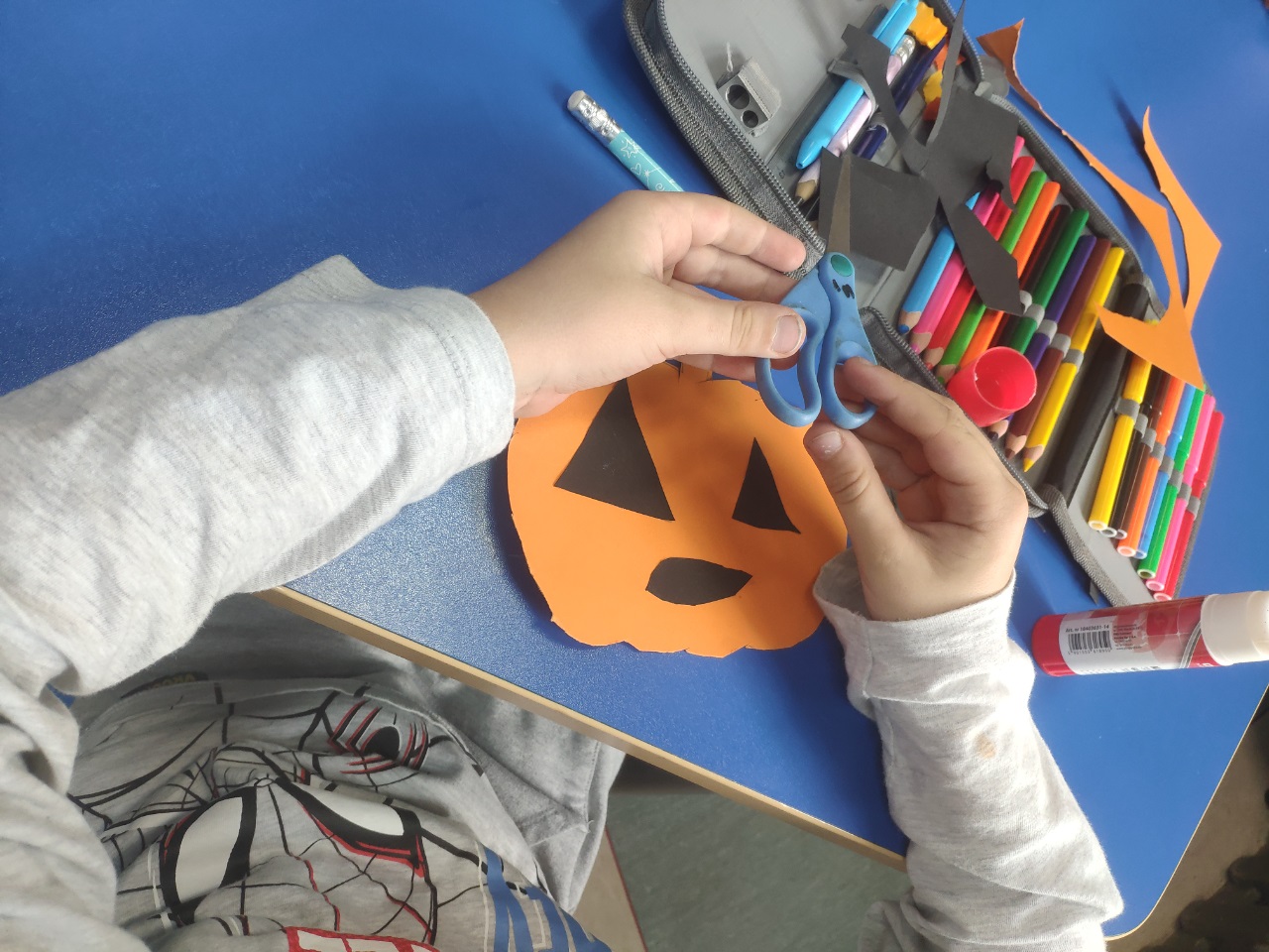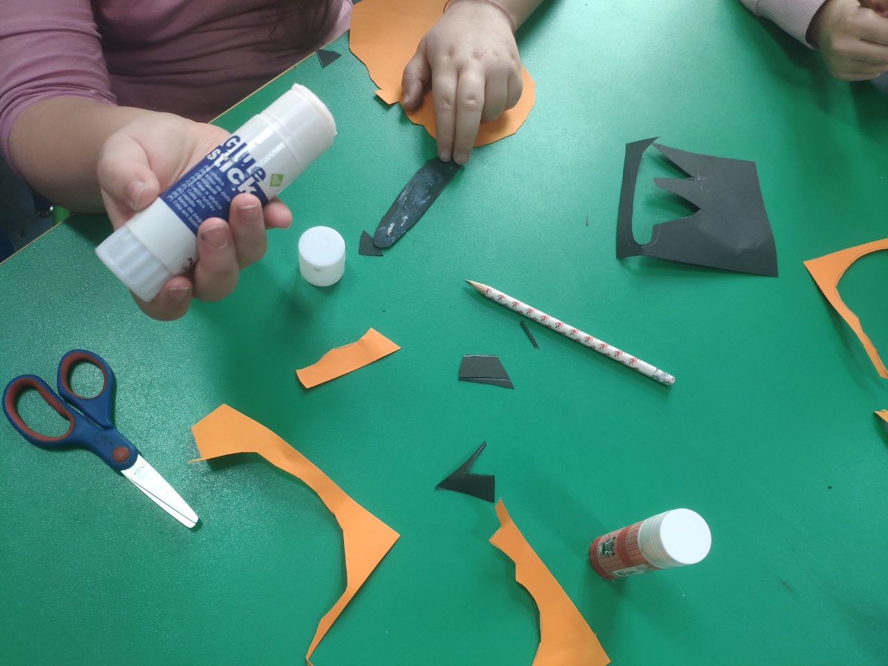 W czasie zajęć świetlicowych dzieci wycinały z papieru dynie i duszki. Wykonały również ciekawe rysunki.