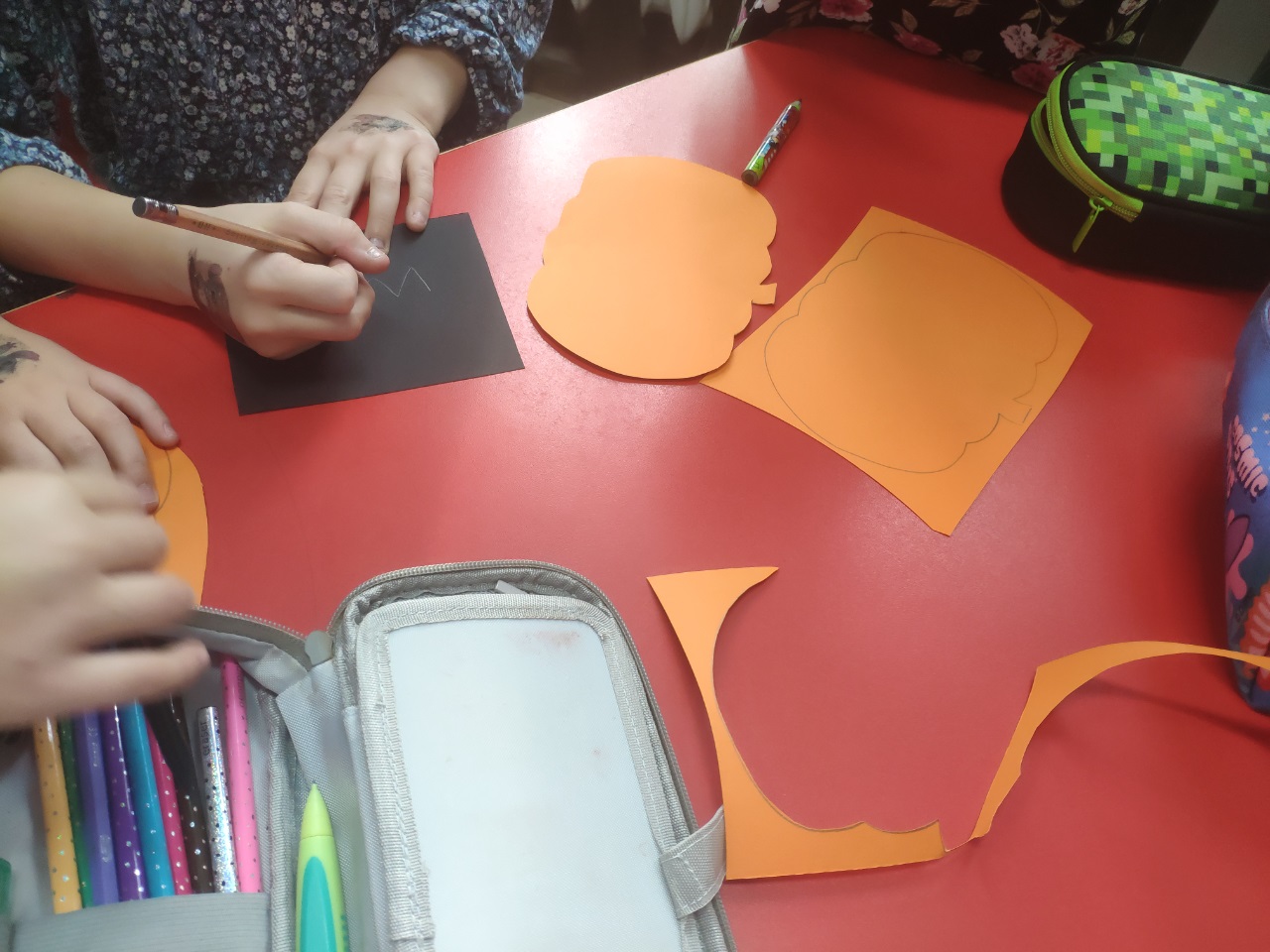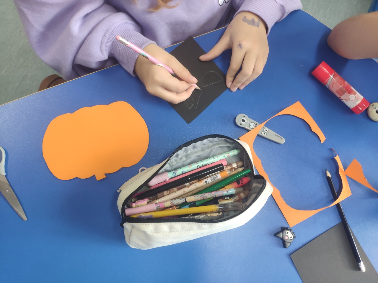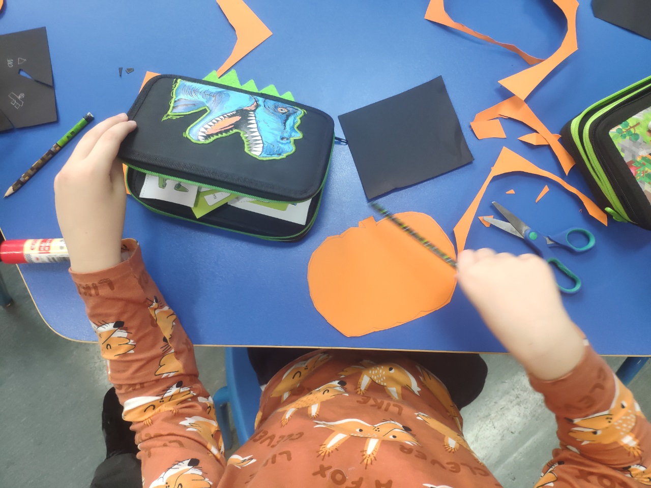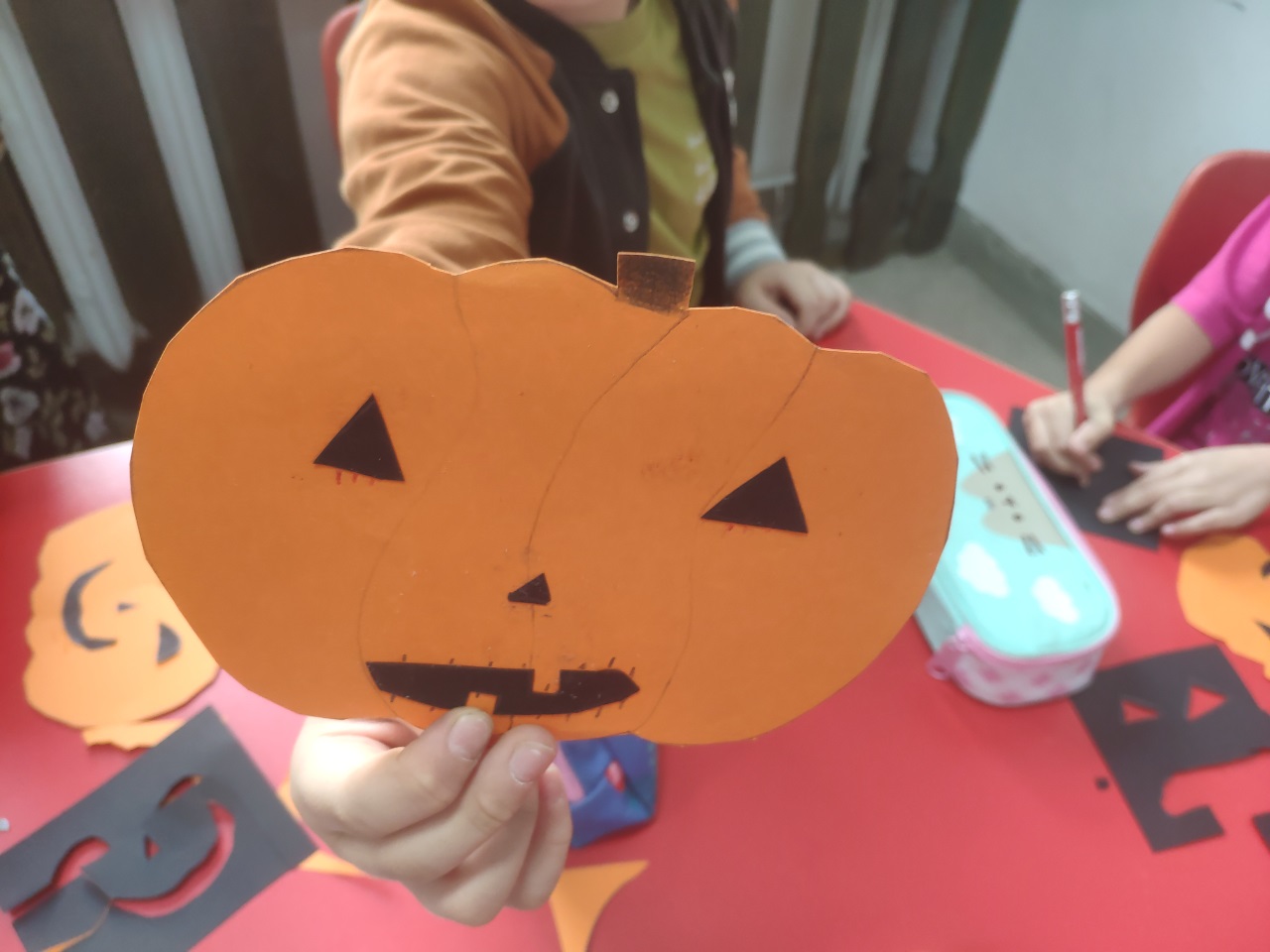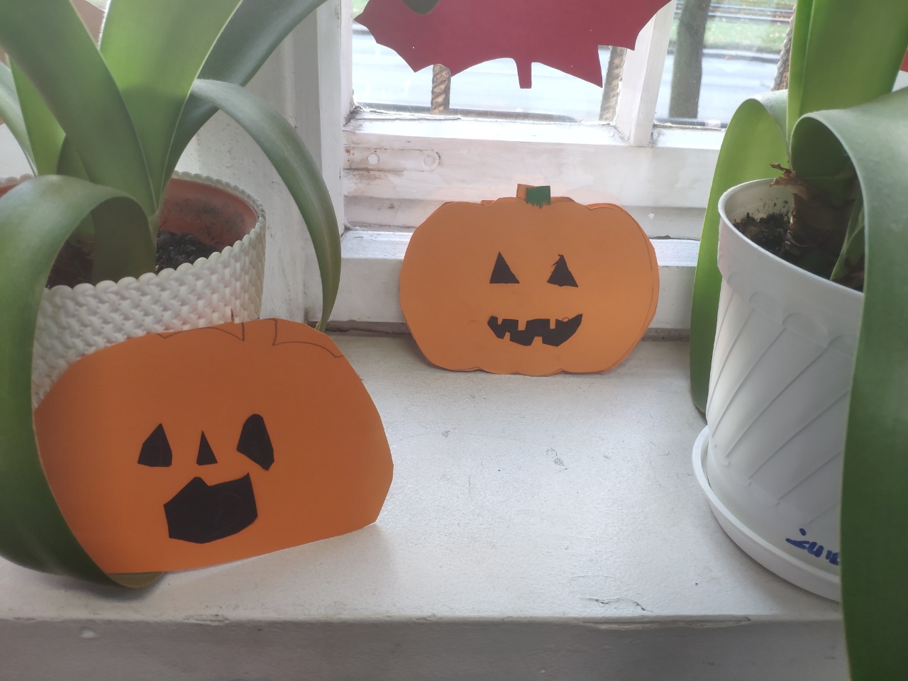 W czasie zajęć świetlicowych dzieci wycinały z papieru dynie i duszki. Wykonały również ciekawe rysunki.