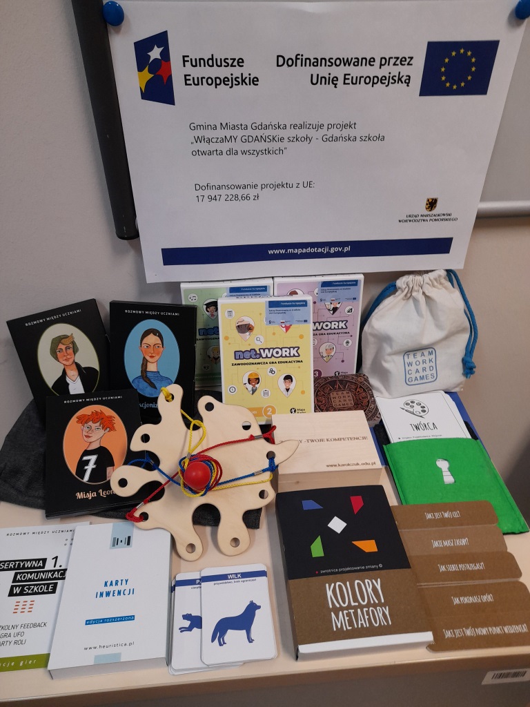 W pracy indywidualnej i grupowej wykorzystujemy teraz nowe, profesjonalne narzędzia. W ramach inicjatywy „Włączamy GDAŃSKIE szkoły – Gdańska szkoła otwarta dla wszystkich” nasza szkoła otrzymała także świetne pomoce edukacyjne, które czynią doradztwo jeszcze bardziej angażującym.